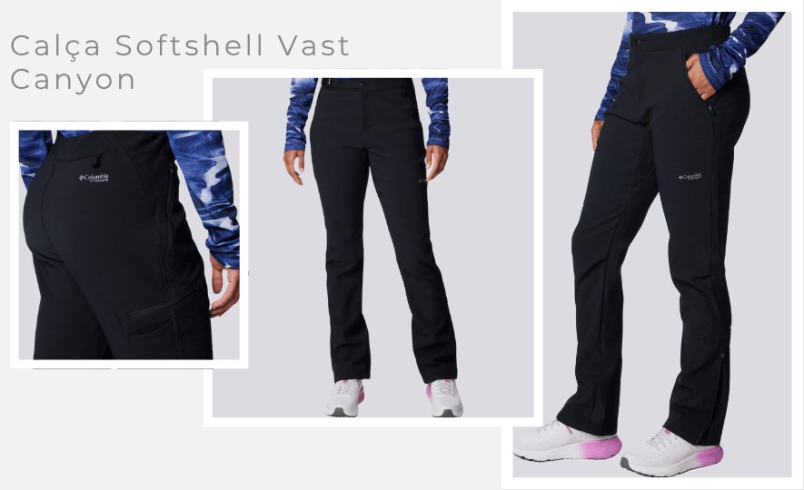 Priorize roupas versáteis e compactas, garantindo que leve apenas o necessário sem sobrecarregar a mala. Peças como a calça Softshell Vast Canyon Omni-Heat Infinity são indispensáveis, pois além de ocupar pouco espaço, são extremamente funcionais.