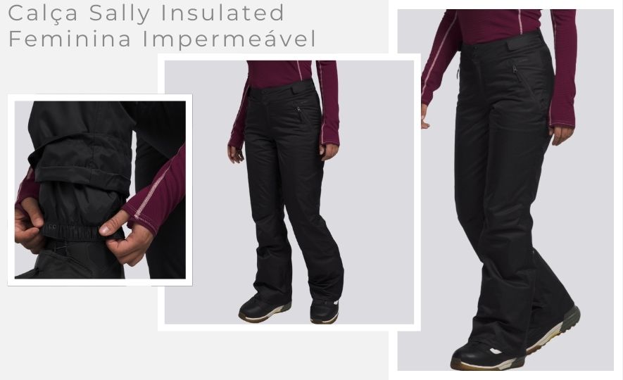 Um bom exemplo é a Calça Sally Insulated Feminina Impermeável, confeccionada em tecido DryVent™ de camada dupla, com poliéster reciclado, tratamento repelente de água e isolamento térmico Heatseeker™, que garantem proteção e conforto ao longo de todo o uso.