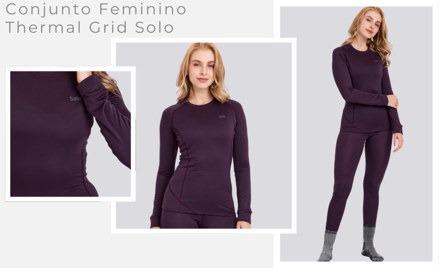 Um bom exemplo desse tipo de vestuário é o Conjunto Feminino Thermal Grid desenvolvido para maximizar a retenção de calor e o gerenciamento da umidade. Produzido com tecido Grid 3D, ele possui textura aveludada na parte interna, que proporciona toque macio e sensação acolhedora, além de favorecer a respirabilidade e a dispersão eficiente do suor.