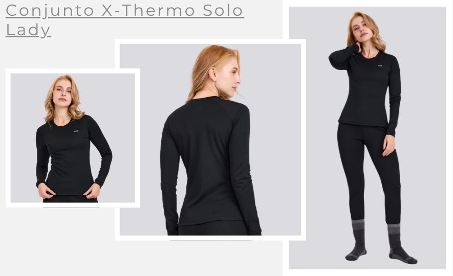 Como por exemplo, o Conjunto X-Thermo Solo Lady que se destaca como uma segunda pele térmica, combinando retenção de calor com dispersão eficiente do suor. Além disso, seu tecido com toque aveludado, oferece conforto, secagem rápida e excelente respirabilidade tanto para frio moderado quanto para intenso.