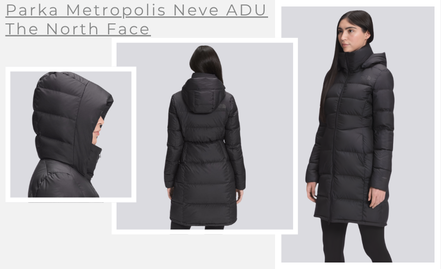 Como por exemplo a Parka Metropolis Neve ADU The North Face que se destaca pela combinação de leveza, alto isolamento térmico e funcionalidade. Além disso, ela é impermeável e resistente ao vento, possui capuz removível e design puffer elegante, sendo perfeita para viagens ou passeios nos dias mais gelados.
